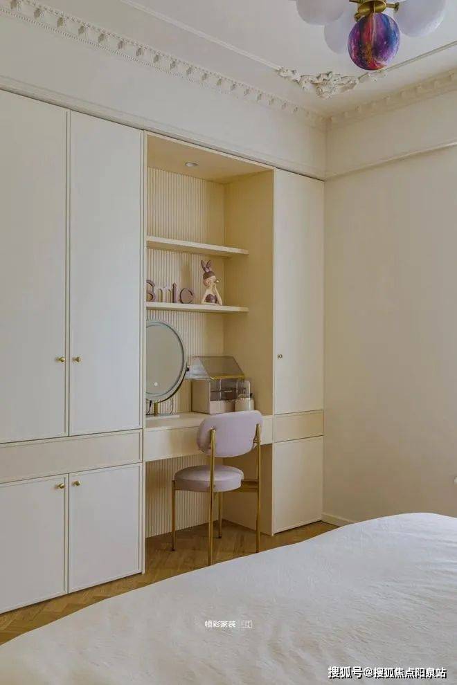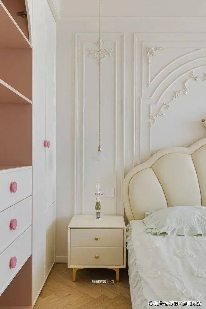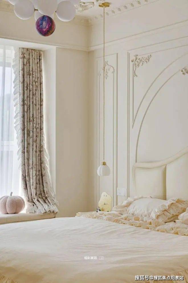主卧来到女儿房,便是正在品味两个滋味亲密的奶油蛋糕,同样的温柔甜蜜,对称石膏线后台也不落窠臼。女儿房延续主卧色调,摆设比拟粗略却让人倍感称心。
