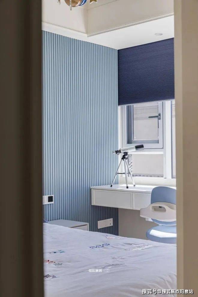 儿子房空间格调相对重稳崭新,家具软装多卡通造型,兼具称心和适用性,配色自成一体,崇敬孩子的喜欢选拔蓝白色系,似乎与窗表的蓝天白云相融,有帮于孩子正在这个温馨的处境中潜心进修和研究。
